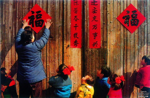 而贴春联也是过年必不可少的呢,每逢春节,无论城市还是农村,家家户户都要精选一幅大红春联贴于门上,为节日增加喜庆气氛。